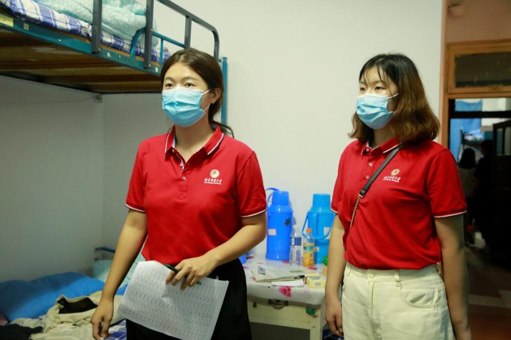 老师们首先关心慰问了新生入住宿舍后的基本情况,为今后的宿舍生活提出了建议。他们亲切叮嘱同学们要注意自己的身体健康,尤其是军训期间要注意规律饮食、规律作息,同时也要注意宿舍通风,保持良好的卫生条件。曲凤东重点强调了做好宿舍防疫的重要性与必要性,叮嘱同学们切勿松懈,要注意出门戴口罩、勤洗手等。高思明鼓励同学们积极与学院老师保持沟通,有问题积极寻求学校和老师的帮助。老师们也对新生表达了殷切希望,希望同学们从现在开始合理安排时间,努力完成每一个小目标,在学习中不断成长进步。