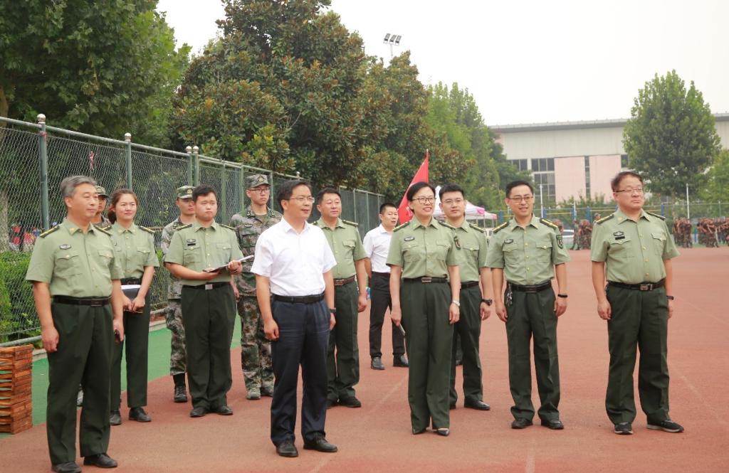 的军训现场,检查指导2021级新生军训工作,看望参训新生,并详细听取和了解了学院军训工作和军事训练进展以及宣传、文体、军训后勤保障等方面的情况。