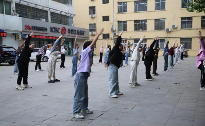 学子有条不紊的开始广播体操的训练。跟随着领操员的节奏,炸金花