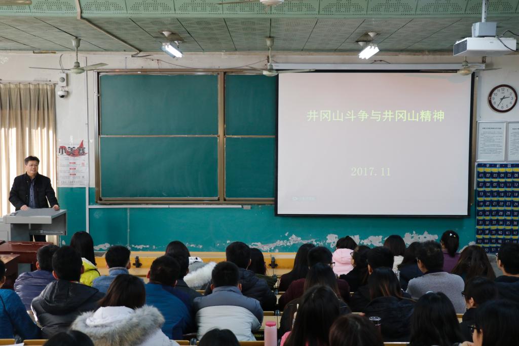 井冈山革命根据地是中国革命战争初期,中国共产党在湖南、江西两省边界罗霄山脉中段创建的第一个农村革命根据地,被称为“中国革命的摇篮”。课堂上,刘建新带领全体同学一起重温历史,回顾了井冈山革命根据地的创建背景、井冈山革命发展的历史时期、革命中的代表人物以及井冈山斗争取得的胜利成果。系统阐述了井冈山斗争在中国革命史中的历史地位和作用,阐释了井冈山精神的实质和内涵,论述了井冈山精神对于我们当今建设中国特色社会主义,实现伟大中国梦的时代价值和意义。