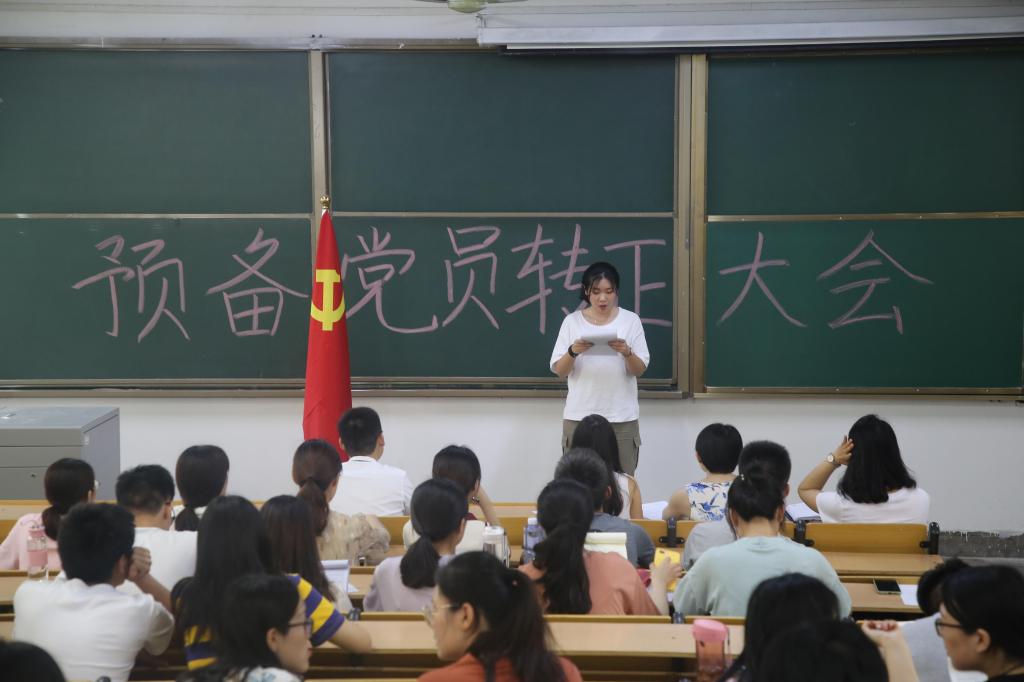 预备党员依次上台宣读自己的转正申请,向组织就这一年来在思想、工作和学习等方面进行了汇报,表达了自己对加入中国共产党的真诚希望。经过不记名投票,李文凯等16位预备党员全票通过,成为中共正式党员。曲凤东对如期转正的党员们表示祝贺,同时对大家提出新的期望,希望他们加强理论修养,不忘初心,严格要求自己,提高党员意识,争做合格党员。