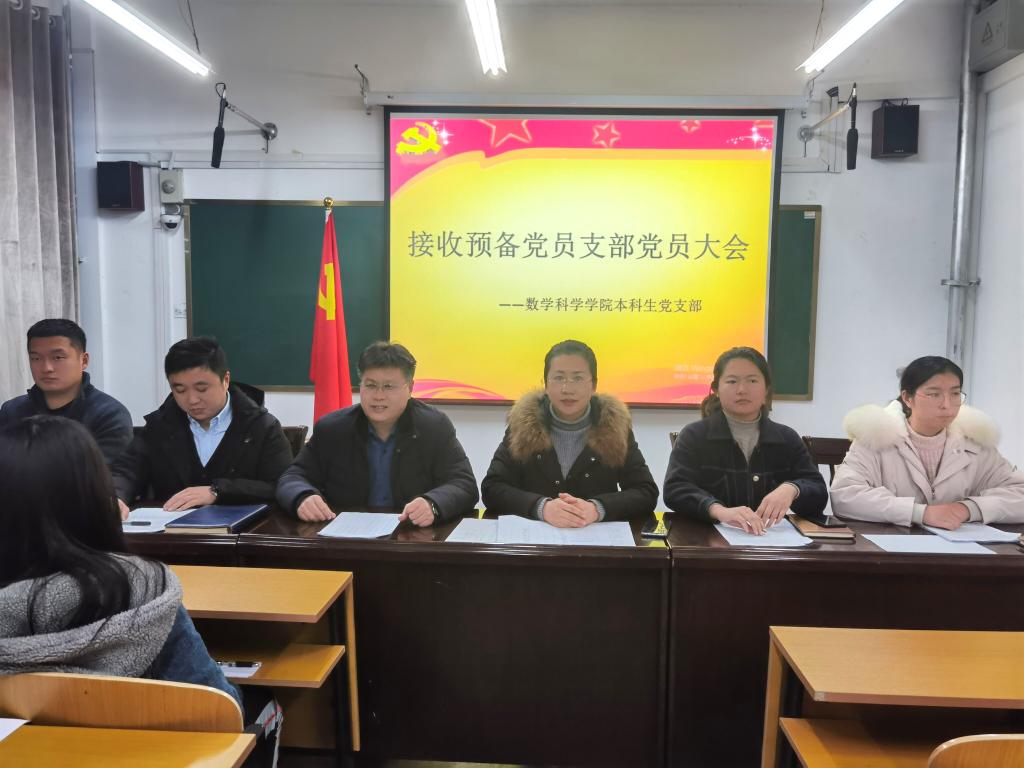 本科生党支部召开接受预备党员支部大会,党委书记刘建新,本科生党支部书记朱伟卫,支部其他委员荣斌、韦宁、徐腾飞、高思明等出席会议。会议由支部书记朱伟卫主持召开。