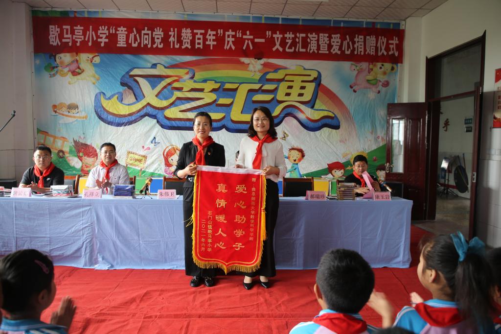 师生走进歇马亭小学,成功举办了“歇马亭小学‘童心向党 礼赞百年’庆‘六一’文艺汇演”暨爱心捐赠仪式。出席捐赠仪式的有炸金花