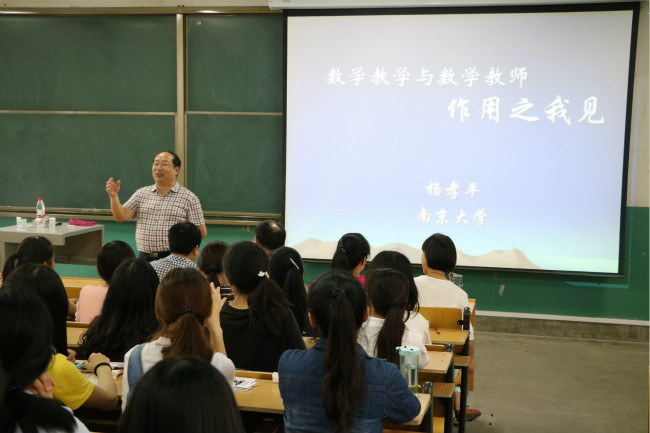 杨孝平教授从三个方面生动形象地介绍了数学教学和数学教师的作用。杨效平教授分别从教育的理念和数学是什么介绍了对数学教学的认识,并指出对数学教学的认识是突出基础、抓住本质、学会简单、学会思考、学会提问。谈到对数学教师的认识,他从师者之道、数学教师的人文情怀、数学教师之能力发展三方面娓娓道来。最后在教师的作用方面,他指出教的原则从思想与方法入手,让学生学会思考和“问问题”,且教且学—教学互融与相长.对学生,要学会:容忍异想天开,容忍错误,容忍“不严密”。对教学,注重课程之间、章节之间、知识之间的关联,教师须在群体活动之中,相互切磋,取长补短,不虚美,不隐恶,坦诚相见。教师应有开放的学习心态。独学而无友,则孤陋寡闻。