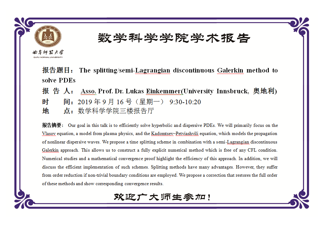 Asso. Prof. Dr. Lukas Einkemmer学术报告