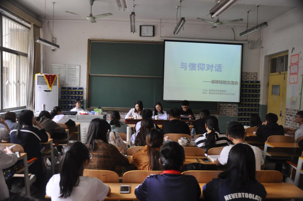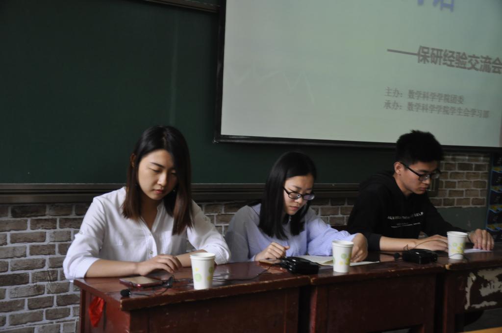 于数学楼108教室举办了保研经验交流会。学院保研的大四学生徐达、李美琪、周金平出席了本次活动,他们分别在去年的研究生推免中获得山东大学(威海分校)、中国科学技术大学、北京师范大学的研究生保送资格并成功录取。